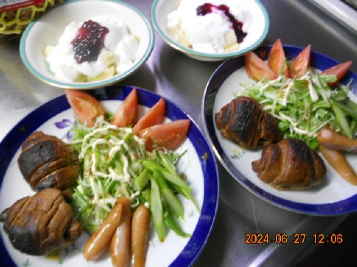 夕飯 軽く ヨーグルばななに蜂蜜 パン・果物ゼリー で 済ませる