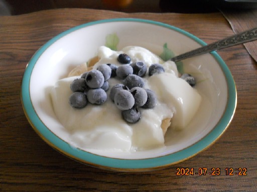 ☆昼食 豚しゃぶ冷麺 レモンだれ ヨーグルト(ブルーベリー)