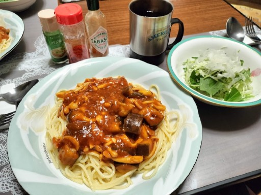 ゴロゴロ茄子 存在感あり~ いつもは 130gの麺を使うけど 今日は 100gにして 正解!